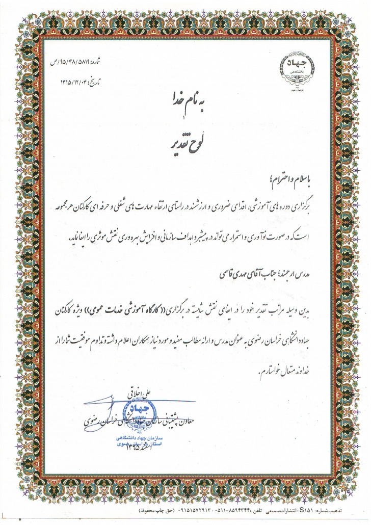 مشهد ، خیابان صاحب الزمان ، مجتمع سبحان ، ورودی 4 ، طبقه اول ، واحد 103