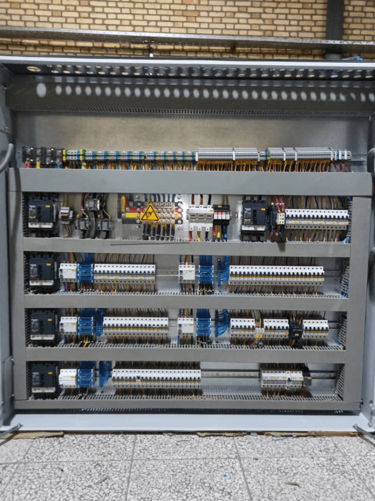 در داخل محفظه تابلوی برق صنعتی تجهیزات الکتریکی یا الکترونیکی مانند سوئیچها، دستگیره ها و نمایشگرها به صورت منظم در ردیف های عایق بندی شده قرار می گیرند؛ بنابراین اپراتور به آسانی می تواند آن ها را کنترل، تعمیر و تعویض نماید.